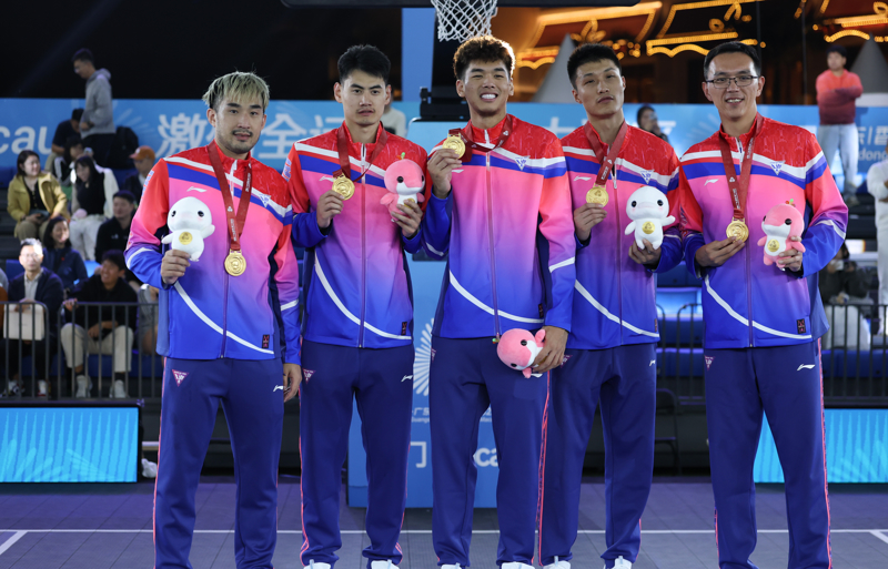 新华社像片,澳门,2025年11月15日\n 11月15日,冠军上海队在授奖典礼上。\n 当日,在澳门进行的第十五届寰宇畅通会三东谈主篮球须眉金牌赛中,上海队20比18驯服山东队,夺得冠军。\n 新华社记者 孙凡越 摄