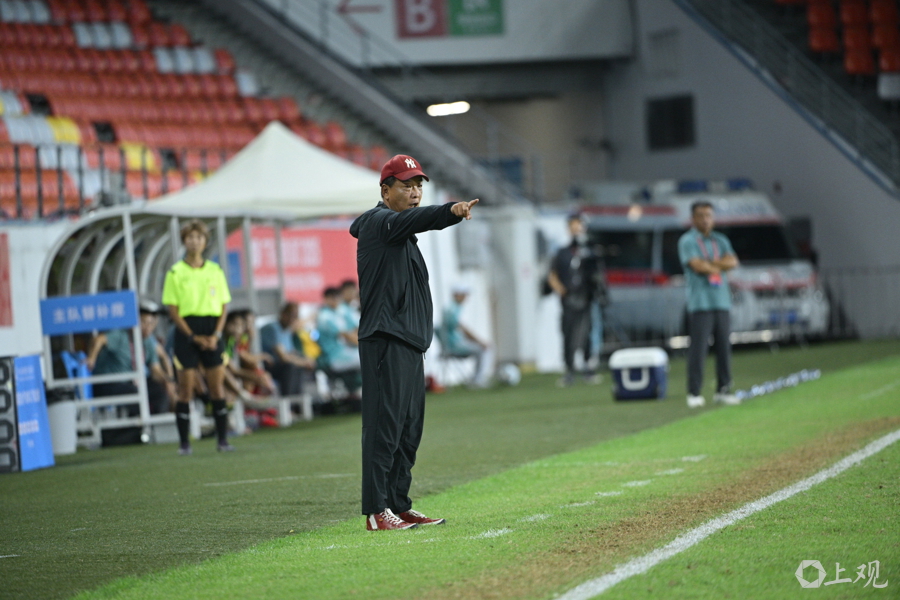 黄坚雄在场边指挥 李一平 摄