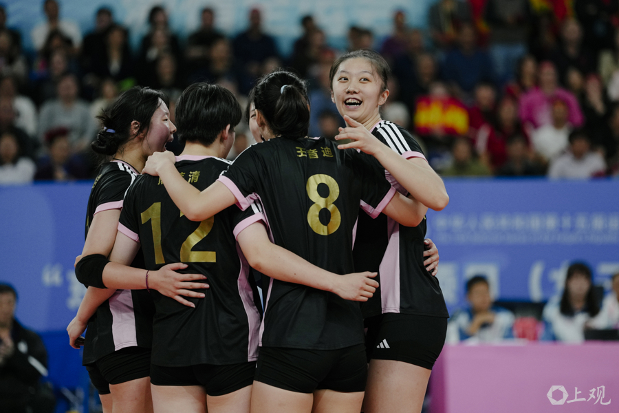 上海U20女排庆祝得分 新民晚报 李铭珅 摄