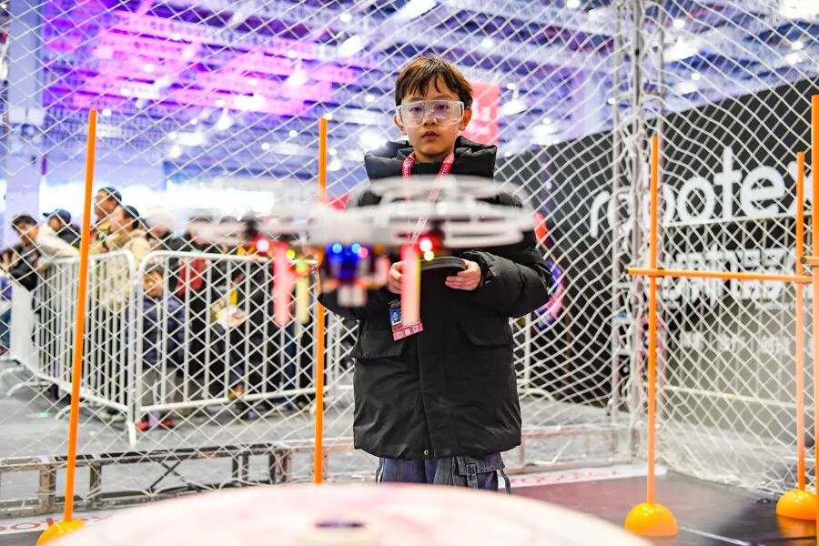 参赛的科技少年正在操控无东谈主机。